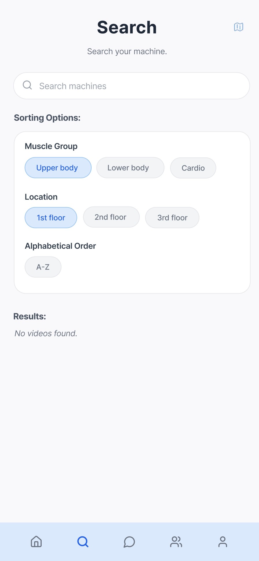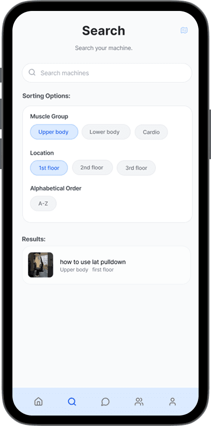 Added a floor level filter on the search results page to narrow down by floor and muscle group.