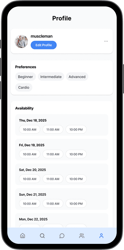 Users loved how easy it was to find gym partners based on availability and fitness goals. With the scheduler, they could see who fits their schedule best and has similar fitness goals, so everyone is on the same page and can find a good workout buddy.